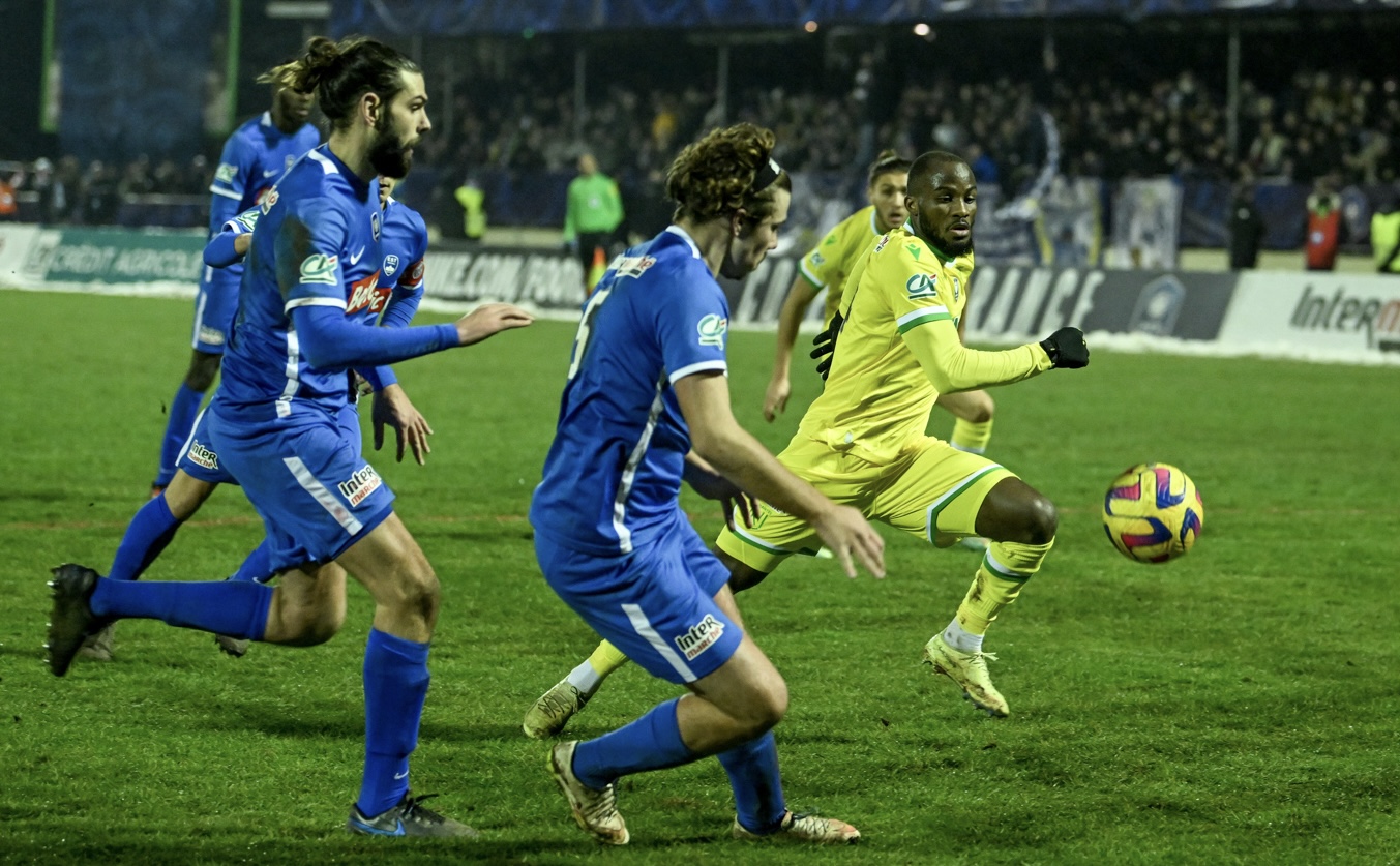 Ce dimanche soir, le FC Nantes se déplaçait à Épinal pour affronter l’ES Thaon (N3) pour le compte des 16èmes de finale de la Coupe de France. Les hommes d’Antoine Kombouaré se sont qualifiés grâce aux tirs au but (0-0, 2-4 tab). Jean-Charles Castelletto était titulaire et a terminé la rencontre avec un carton jaune. Rentré en jeu à la 59e minute, Ignatius Ganago lui, a raté son penalty. Heureusement pour lui, les autres tireurs nantais ont été plus efficaces.