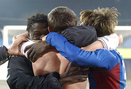 Le Partizan de Belgrade de Pierre Boya et le Sporting de Rudolph Douala ont aussi franchi le cap des seizièmes de finale en allant s’imposer respectivement au Meteor – Dnepropetrovsk (Ukraine) et au De Kuip – Rotterdam (Hollande). Après le match nul de 2 buts partout ramené de Belgrade, Dniepropetrovsk semblait vouloir se contenter de ses buts inscrits à l’extérieur et obtenir ainsi une qualification face au Partizan qui enregistrait le retour de son attaquant vedette, le camerounais Pierre Boya. Réduits à dix contre onze, les Serbo-Monténégrins ont surpris le FC Dnipro Dnipropetrovsk par un but inscrit à la 88e minute par le remplaçant Miroslav Radovic. Avec cette victoire, l’équipe de Belgrade croisera le fer avec le PFC CSKA de Moscou.