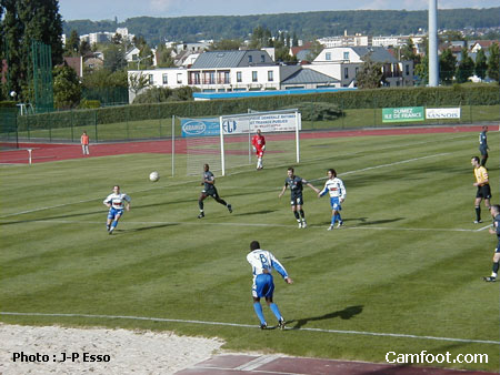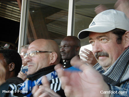 ce match de Samedi 7 mai dernier confirmait la dynamique actuelle. On pouvait noter en tribune d’honneur, en compagnie des dirigeants du club Luc Dayan et Bruno Gaccio (co-auteur des Guignols de Canal+) la présence de Roger Milla qui donnera le coup d’envoi symbolique à 18 heures. Après un début de match largement dominé par les locaux mais vierge au tableau d’affichage, le camerounais PAUL ALO’O EFOULOU à la pointe de l’attaque des blancs et bleus marquera un but juste avant la mi-temps, apres plusieurs tentatives infructueuses.