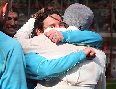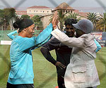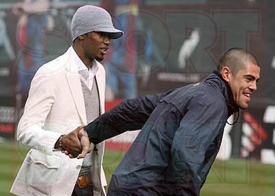 Rijkaard avait divisé l’équipe en deux pour faire quelques “rondos” (oppositions). Lorsque le camerounais apparut, il transforma la tranquillité apparente en une grande fête de bienvenue dont Samuel Eto’o était le grand centre d’intérêt.