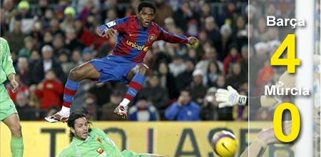 Rijkaard qui ne dispose que de 17 joueurs suite aux blessures (Jorquera, Oleguer, Edmílson, Ronaldinho, Deco et Messi) avait décidé de réserver certains de ses titulaires pour la rencontre de ce soir face à Murcia, parmi lesquels Milito, Abidal et Iniesta.
