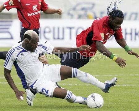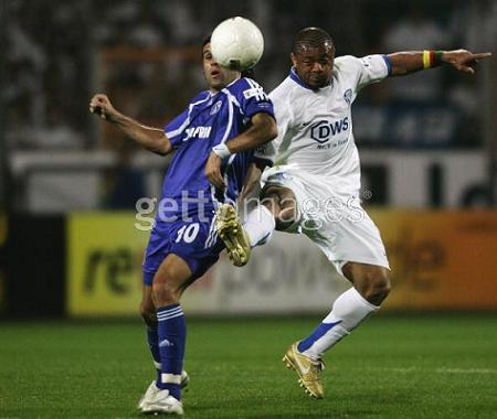 Ici au coude à coude avec l'attaquant Brésilien Wagner Love