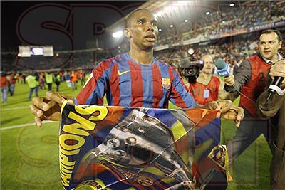La première mi-temps de la rencontre de Celta Vigo-Barça s’était soldée sur un score vierge, et il a fallu attendre la 55ème minute pour voir les barcelonais inscire le but de la victoire, même si celle-ci n’était plus nécessaire. Et Samuel Eto’o se chargeait d’offrir un superbe but (Audio du but) décisif à son équipe pour célébrer ce nouveau titre de la plus belle des façons.
