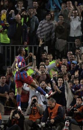 Après dix minutes de jeu dans le match de ce vendredi, il reçoit la balle dos au mur dans la surface de réparation. Eto’o contrôle la passe de Giovanni Van Bronckhorst et avec juste deux touches, il gagne quelques mètres sur le joueur chargé de la barrer (Peña), suffisants pour se retourner et exécuter une frappe sèche qui envoie la balle au fond des filets sans que Barbosa ne puisse la bloquer. L’attaquant azulgrana se dirige alors sur le côté pour le célébrer, comme à son habitude. Il venait d’inscire le but qui ouvrait et mettait en même temps fin au match.