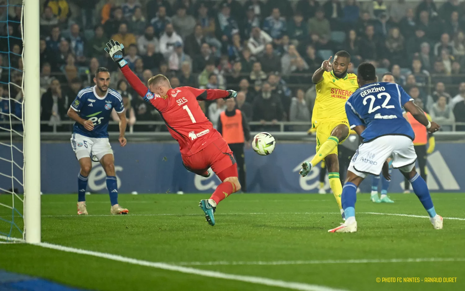 Après une première période plutôt équilibrée, Nantes revient sur la pelouse avec plus d’envie. C’est Marcus Coco qui ouvre le score à la 50ème minute de jeu (0-1). En effet, il est à la conclusion d’un excellent travail de l’attaquant nigérian, Moses Simon, sur le flanc droit. Le franco-camerounais, Gerzino Nyamsi, n’a pas réussi à repousser le ballon qui l’a surpris dans la surface de réparation.