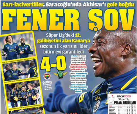 Impérial depuis la défaite lors du premier match de la saison face à Konyaspor, Fenerbahce a accumulé 38 points et mène le championnat turc, 11 points de plus que le second, Kasimpasa. Achille Webo, qui a retrouvé sa confiance, était comme d’habitude aligné aux avants postes alors que son club recevait Akhisar.
