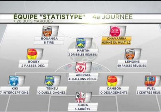 Auteur de 5 arrêts de classe vendredi avec l’AC Ajaccio, lors de la réception de Paris FC (2-0), Jules Goda (4 matchs, 1 but encaissé en L2) fait partie, pour la seconde fois, de l’équipe « Statistype » de la chaîne Bein Sports, l’équipe-type de la quatrième journée de Ligue 2, basée uniquement sur les statistiques des joueurs. Comme lui, Adolph Teikeu, 10 duels remportés lors du choc entre Nancy et Sochaux (2-2) s’est aussi démarqué.