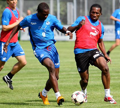 En s’engageant le mercredi 16 Juillet 2008 pour une durée de trois ans avec le club Danois de Odense (Une équipe qui a eu dans son passé lointain Tchami Alphonse et autres Sunday Oliseh), Eric Djemba-Djemba ne cachait pas son ambition de jouer la coupe du monde 2010 avec l’équipe nationale du Cameroun. djemba-7.jpg Après 7 journées de championnat disputées, deux buts marqués et une première place avec Odense Boldklub qui totalise 18 points contre 14 pour son premier concurrent, l’ancien finaliste de la coupe des confédérations 2003 a fait un grand pas en avant. C’est à l’Allianz Arena de Munich que „Cantona“ va refaire son apparition sur un terrain Européen après avoir passé une année au Qatar où il va inscrire 5 buts dont le plus beau de la saison contre Sailiya SC. Aux cotés de Clarence Seedorf, van Nistelrooy et autres Michael Ballack, l’ancien pensionnaire de la KSA va participer au match de gala organisé par la fondation Goal4Africa soutenue notamment par Neslon Mandela et du Prince Albert II de Monaco.