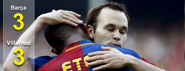 Dénouement cruel pour Barcelone. Les coéquipiers de Samuel Eto’o étaient champions d’Espagne à la 90ème minute. Mais, dans les arrêts de jeu, Villareal a égalisé privant la Catalogne du sacre attendu. Le Pichichi est à créditer d’une bonne rencontre ; Beaucoup de mouvement, il s’est créé de nombreuses occasions et a inscrit le second but Barcelonais, celui qui redonnait l’avantage à son club. Remplacé pour des raisons tactiques par Silvinho, à la 68ème minute. Le Barça a l’occasion d’inscrire son premier titre mardi avec la finale de la Coupe du Roi.