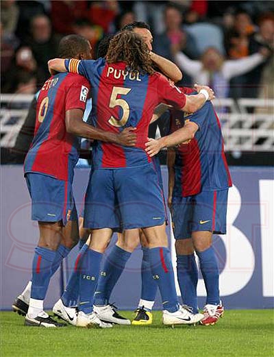 2 FC Barcelona: Valdés: Zambrotta, Puyol, Thuram, Gio; Xavi, Edmílson, Iniesta (Gudjohnsen, 84′); Messi (Oleguer, 90+2′), Eto’o et Ronaldinho.