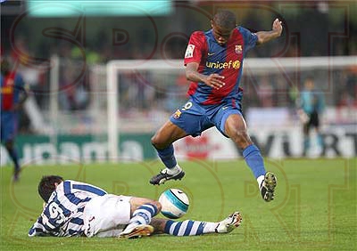 La soirée ne s’annonçait pourtant pas aisée pour les joueurs de Frank Rijkaard, vue la situation de la Real Sociedad classée 19ème sur 20 équipes et qui lutte pour le maintien en Liga. L’équipe entraînée par Miguel Ángel Lotina avait donc tout intérêt à prendre des points. L’entraîneur hollandais avait de nouveau aligné son trident offensif, Ronaldinho, Eto’o et Lionel Messi, le camerounais et l’argentin évoluant plus sur les côtés alors que le brésilien occupait le milieu de l’attaque. C’est d’ailleurs ce dernier qui fut à l’origine des deux seuls, mais précieux buts, en faveur du Barça inscrits lors de la rencontre ; les deux en seconde mi-temps.