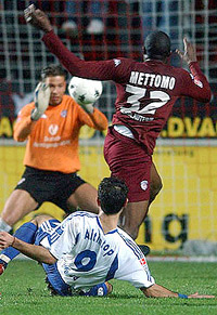 No Cameroonian played this past weekend in Germany’s Bundelsiga. The previous weekend Lucien Mettomo played in Kaiserslautern’s 1-1 draw with Hertha Berlin and scored his only goal of the season, knocking in a loose ball off of a corner kick into the net in the 50th minute. Raymond Kalla also played two weekends ago for Bochum but had a poor match in their 2-0 loss to Schalke and was replaced after 65 minutes. In Bundesliga 2, Francis Kioyo was the only Cameroonian in action this week, playing at forward for Rot Weiss Essen in their 2-1 win over Karlsruhe.