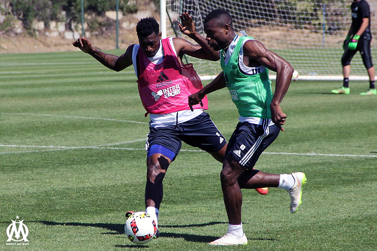 Depuis le 1er juillet, les Phocéens sont en stage. Les trois Camerounais et leur équipe se sont entraînés dès 9h30 ce vendredi matin au centre Robert Louis-Dreyfus. Partagé en deux, le groupe a travaillé techniquement et tactiquement après l’échauffement et un long toro. D’un côté, les joueurs ont enchaîné par binômes des exercices de renforcement musculaire sous la direction du préparateur physique, Pieter Jacobs. Et de l’autre, sur le terrain du «bas», abondamment arrosé pour l’occasion, Thomas Fernandez et Thomas Bénédet ont dirigé deux ateliers techniques de passes. Deux circuits ont été délimités à l’aide de piquets et les joueurs, en rotation autours de ceux-ci, ont dû enchaîner les transmissions et les remises, en une ou deux touches de balle à certains postes. L’accent a notamment été mis sur la qualité des passes et la fluidité du jeu en essayant d’augmenter le rythme tout au long des exercices, apprend-t-on du site officiel du club. L’OM va livrer plusieurs matchs de préparation dès mardi prochain.