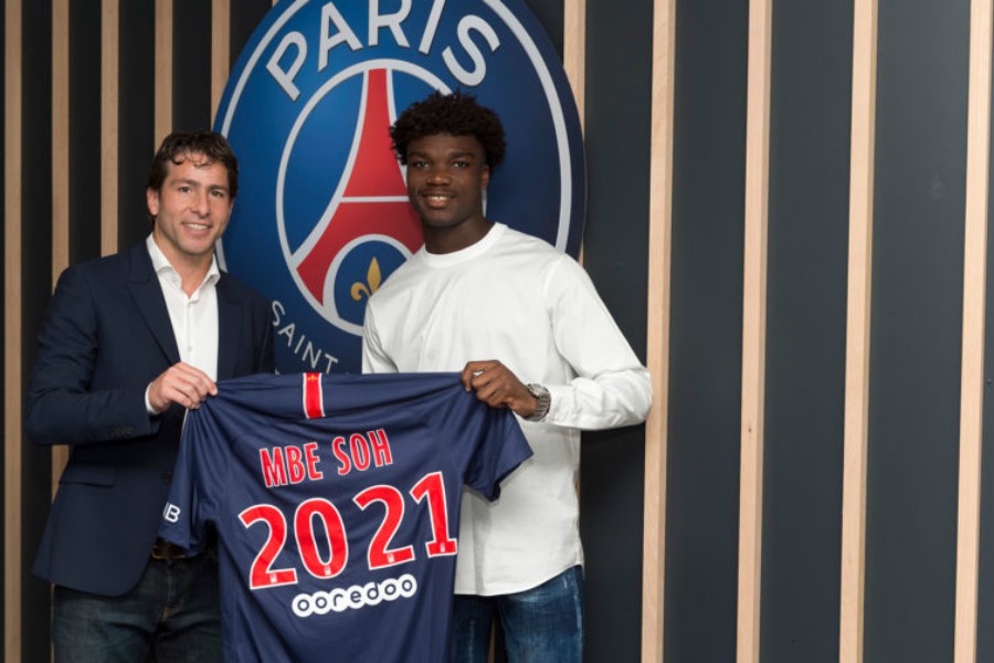 Ô Cameroun berceau de nos ancêtres. Il s’appelle Loïc Mbe Soh, né le 13 juin 2001 à Souza Gare au Cameroun. À tout juste 17 ans, il a signé son premier contrat de joueur professionnel dans son club formateur, le mythique club du Paris St-Germain. Mais il a déjà tout un pedigree. Champion de France U17 en 2016-2017, il a évolué lors de la saison 2017-2018 au sein de l’équipe U19 avec laquelle il a notamment pris part à 7 rencontres d’UEFA Youth League (1 but). Il a également disputé 3 rencontres avec l’équipe réserve du PSG, engagée en National 2.