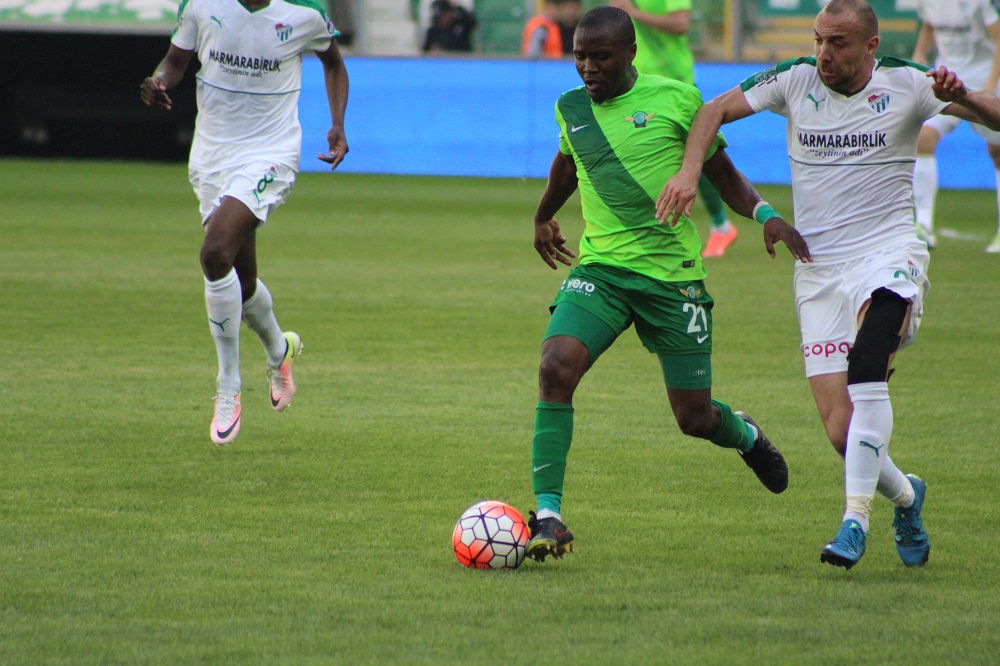 Le héros de l’Akhisar Belediyespor ce dimanche 17 avril 2016, c’est sans aucun doute Landry Nguémo (30 ans, 24 matchs de Süper Lig cette saison). Le milieu de terrain international camerounais a porté son équipe jusqu’à la victoire (0-2) sur la pelouse du Bursaspor qui évoluait avec Dany Nounkeu…sur le banc de touche. Les joueurs du club de l’Akhisar n’ont pourtant pas livré leur meilleur match de la saison au regard d’une première mi-temps stérile. Mais ils ont pu compter sur deux actions géniales de leur Lion Indomptable pour faire la différence. Alors qu’on avait passé l’heure de jeu, l’ex joueur de Saint-Etienne et des Girondins de Bordeaux s’illustre d’abord en servant un bon ballon à Grbić qui n’hésite pas à battre le gardien adverse (0-1, 72e). Le Camerounais se montre encore prolifique dans les derniers instants de la rencontre en inscrivant son deuxième but avec un essai presque parfait (0-2, 90e+1).