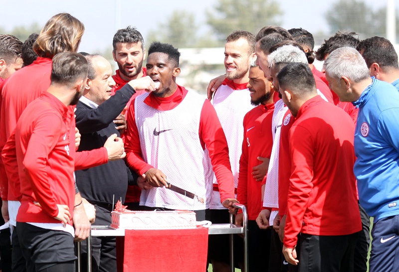 Samuel Eto’o est aimé. Et il a goûté à une partie de cet amour ce vendredi alors que ses nombreux fans, amis, coéquipiers, affidés et autres profiteurs l’ont inondé de message sur les réseaux sociaux. Ses coéquipiers en club, à AntalyaSpor en Turquie, lui ont offert un gâteau. Pas sûr que ce soit de la manière voulu par leur capitaine…