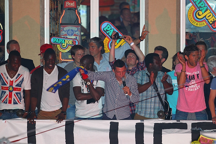 La nuit fut longue du coté de Bâle puisque plus de 10’000 fans se sont rassemblés spontanément au coeur de la ville dimanche soir pour célébrer la 15e victoire de « leur » club au championnat de Super League de football. La fête a commencé lorsque les supporters sont remontés en ville peu avant 21h00 à la terrasse du Casino surplombant le Barfüsserplatz, centre névralgique de la cité rhénane. Malgré un début d’averse, la foule chantait et acclamait les stars du jour, sous les lueurs des engins pyrotechniques.