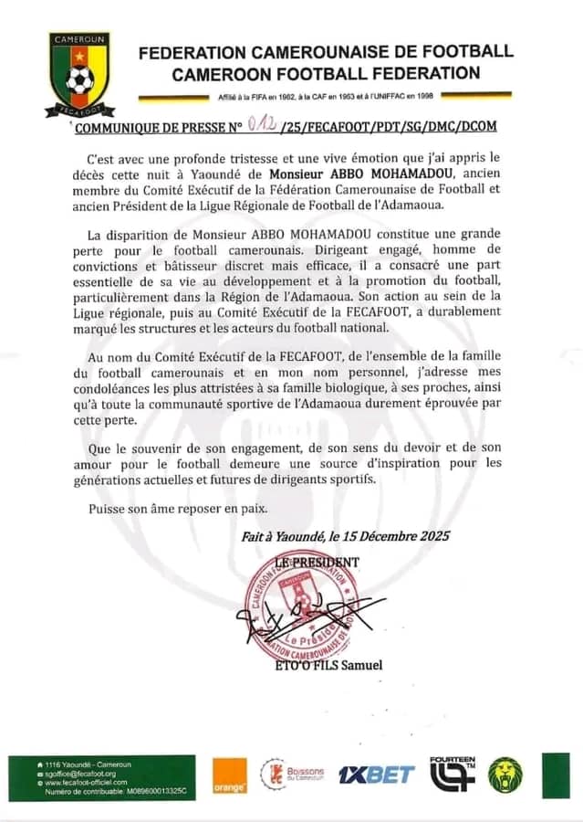 Tags: Abbo MohamadouFecafootSamuel Eto'o Fils