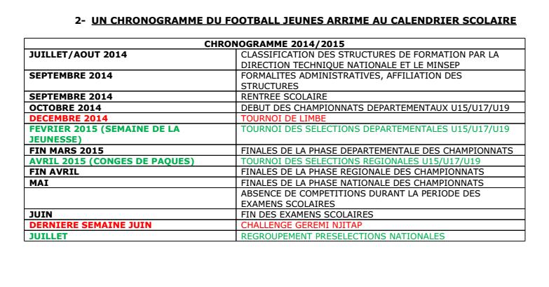 2- UN CHRONOGRAMME DU FOOTBALL JEUNES ARRIME AU CALENDRIER SCOLAIRE