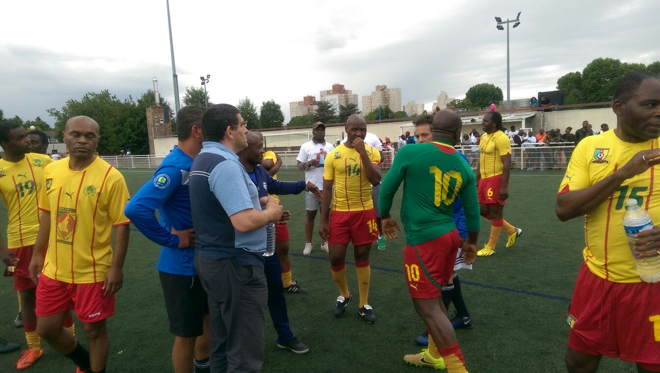 Le clou d’une journée que la famille du football a tenu à honorer. Si les équipes où il avait ses habitudes ont répondu présentes et se sont livrées un combat fraternel, le match de gala opposant les anciens Lions Indomptables aux anciens internationaux algériens a fait le plein. Champions d’Afrique, champions olympiques, et les joueurs ayant porté le maillot « vert-rouge-jaune » étaient si nombreux que le responsable Emmanuel Maboang a choisi de faire deux équipes distinctes, avec comme capitaines Bernard Tchoutang et Alain Nkong, chacun devant assurer une mi-temps. La première équipe alignait entre autres Dorette Elangué, Moukoko Mozer, Serge Mimpo, Ernest Epané, Moke, Serge-Alain Maguy, Thierry Modo, Emile Eyidi et Bernard Tchoutang. Dans la seconde, on trouvait entre autres Constantin Etot, Rogers Epassy, Serge Yofor, Jean Kima, Mbida Messi, Basile Essa, Samuel Kwelleng, Prési Amot et le capitaine Alain Nkong. Tous prêts à en découdre, au point de faire une mi-temps supplémentaire entre les deux équipes camerounaises en fin de match.